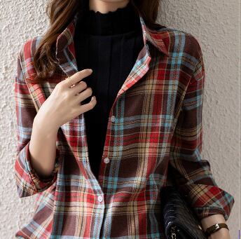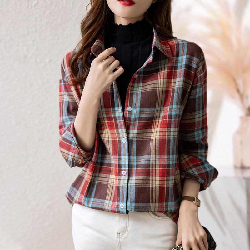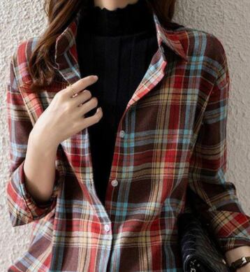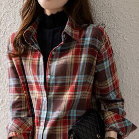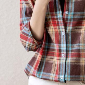 チェック柄シャツ トップス シャツ ブラウス カジュアル レッド 赤 レギュラー丈 袖あり 長袖 襟付き ストレート シングルブレスト ボタン 大人女子 大人 上品 おしゃれ デイリーウェア レトロ レトロ風 こなれ感 キュート かわいい 女子 個性的 デザイン 主役級 存在感 柄 チェック柄 春 スプリング 20代 10代 30代 40代 レディース 女性用 オフィス ビジネス OL 通勤 学生 学校 通学 重ね着 レイヤード S M L XL マルチカラー 多色