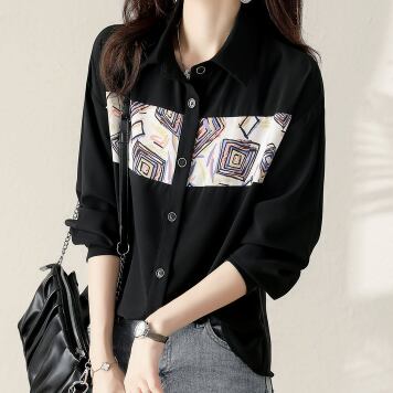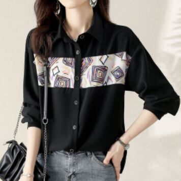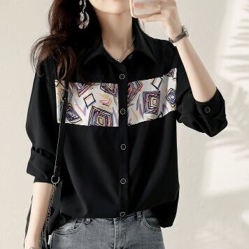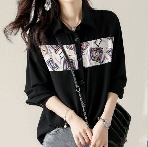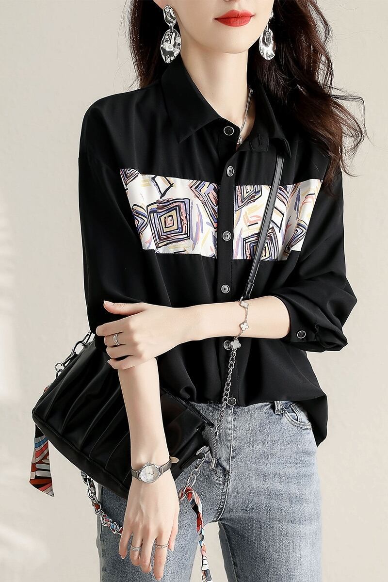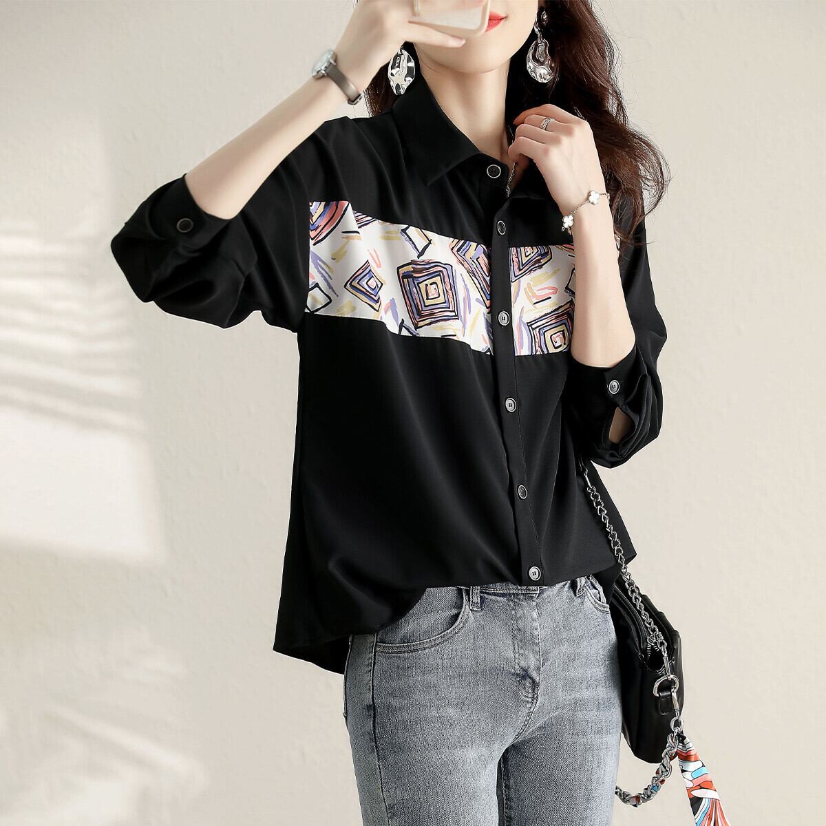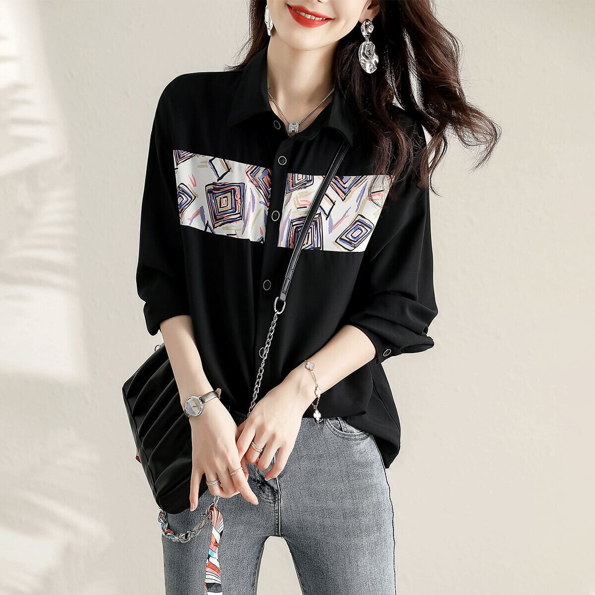 カジュアルシャツ トップス シャツ ブラウス カジュアル ブラック 黒 レギュラー丈 袖あり 長袖 襟付き ストレート シングルブレスト ボタン 綿 コットン 大人女子 大人 上品 おしゃれ かっこいい クール デイリーウェア レトロ レトロ風 こなれ感 個性的 デザイン 主役級 存在感 柄 春 スプリング 20代 10代 30代 40代 レディース 女性用 オフィス ビジネス OL 通勤 学生 学校 通学 重ね着 レイヤード M L XL 2XL マルチカラー 多色