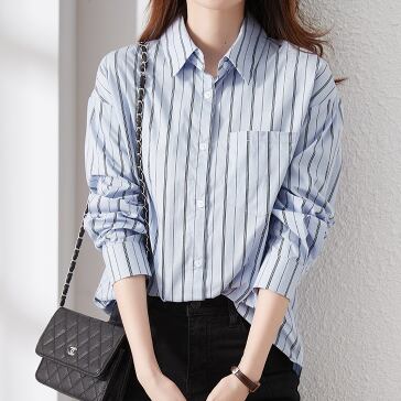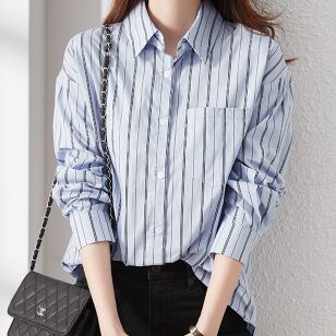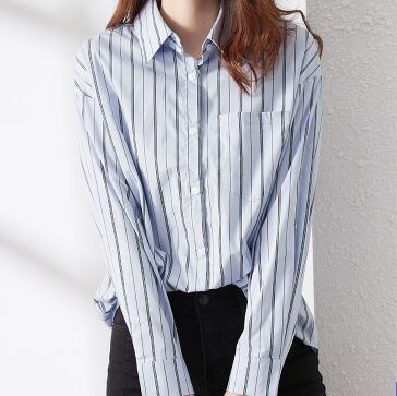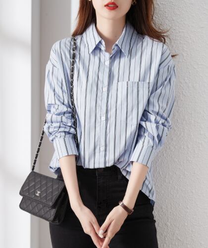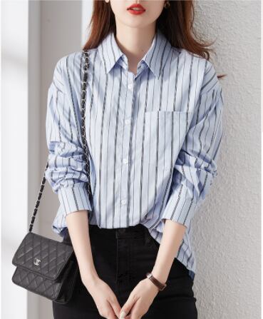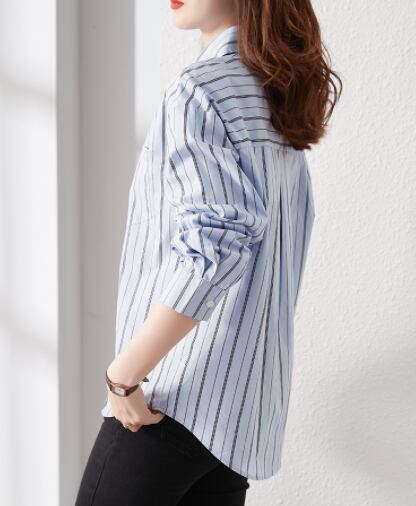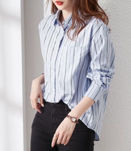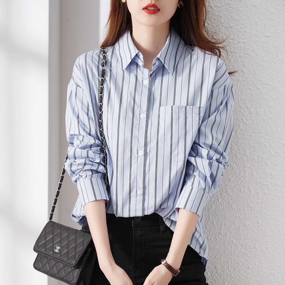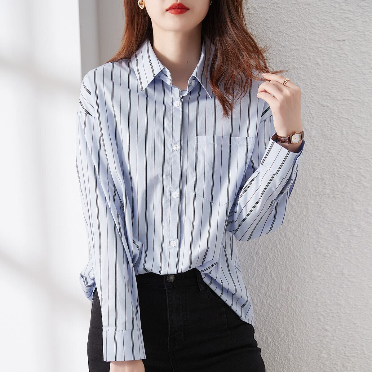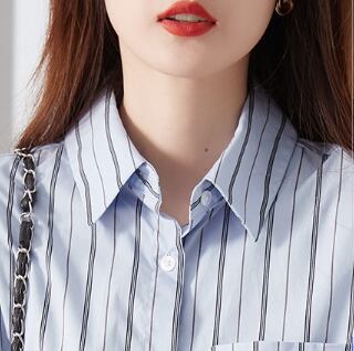 コットンシャツ トップス シャツ ブラウス シンプル ブルー 青 レギュラー丈 袖あり 長袖 襟付き ストレート シングルブレスト ボタン 綿 コットン 大人女子 大人 上品 おしゃれ きれいめ シンプル デイリーウェア レトロ レトロ風 こなれ感 主役級 存在感 柄 ストライプ 縞模様 ボーダー 春 スプリング 20代 10代 30代 40代 レディース 女性用 オフィス ビジネス OL 通勤 学生 学校 通学 着回し 普段使い M L XL 2XL