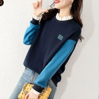 フリル付きセーター トップス プルオーバー スイート ブルー 青 レギュラー丈 袖あり 長袖 スタンドカラー ストレート フリル 大人女子 大人 上品 おしゃれ デイリーウェア レトロ レトロ風 こなれ感 キュート かわいい 女子 個性的 デザイン 主役級 存在感 柄 配色 秋 オータム 冬 ウインター 20代 10代 30代 レディース 女性用 学生 学校 通学 休日 おうち らくちん 着回し 普段使い ファッション コーデ S M L XL