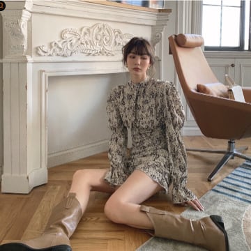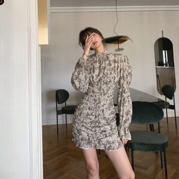 おしゃれな花柄デザインが目を惹くシフォンミニ丈ワンピースです。スリムでタイトなシルエットが、大人可愛い雰囲気を醸し出しています。ハイネックが首元をすっきりと見せ、長袖で気になる二の腕もカバー。ほどよい長さのミニ丈は、春や秋のシーズンにぴったりのアイテムです。