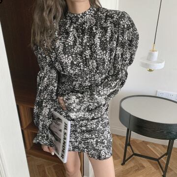 花柄シフォンミニ丈ワンピース ワンピース ミニ丈 長袖 ハイネック スリム タイト 細身 ストレート シフォン 薄手 かわいい 大人可愛い きれいめ シンプル 大人 上品 おしゃれ レトロ 大人可愛い 大人女子 キュート ガーリー 柄 小花柄 フラワー 春 秋 誕生日 二次会 披露宴 10代 20代 30代 40代 レディース ママ 女の子 デート お出かけ パーティー イベント ホテル レストラン 着回し ファッション コーデ モテ プレゼント S M L 小さいサイズ コンパクト 白 ホワイト 黒
