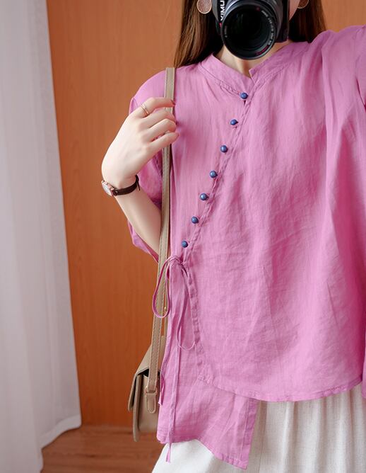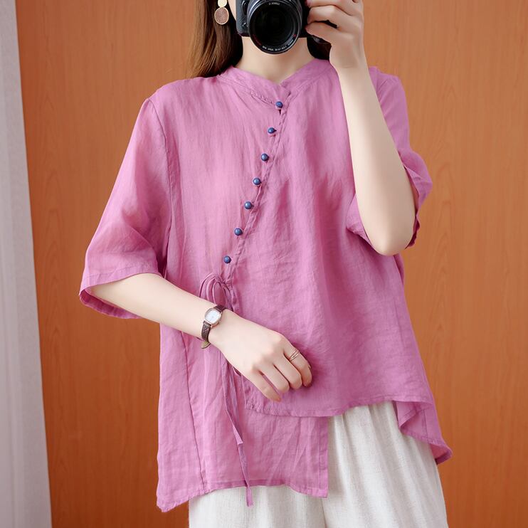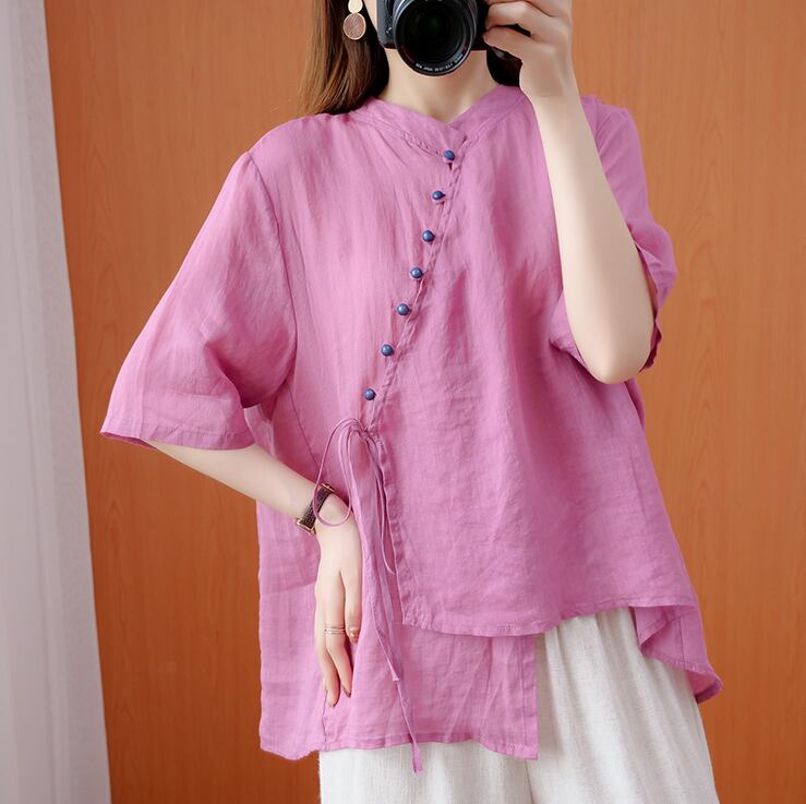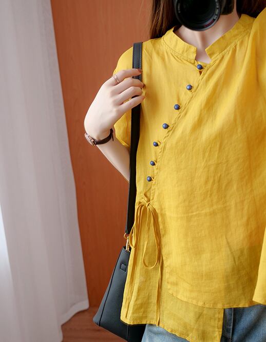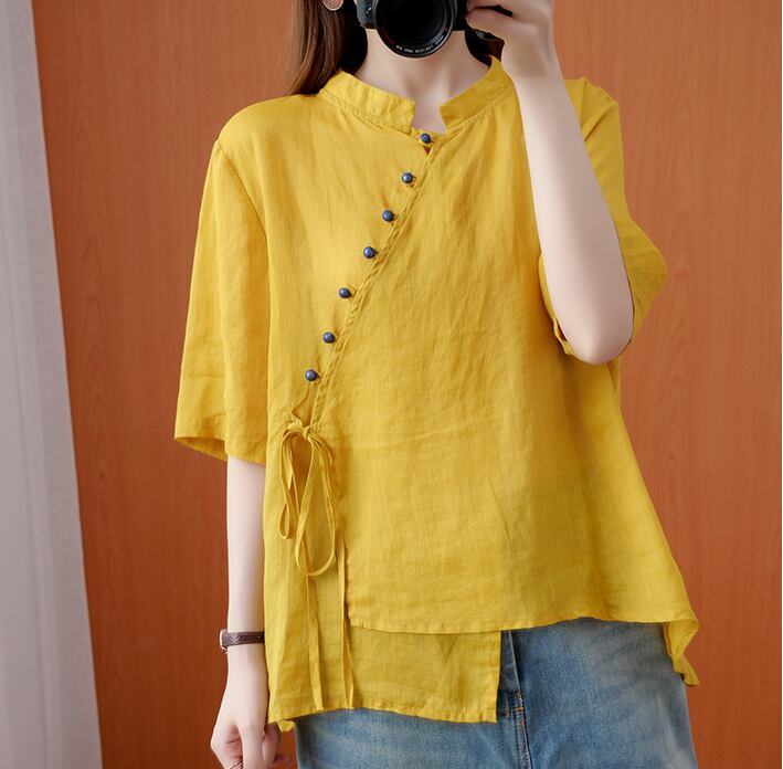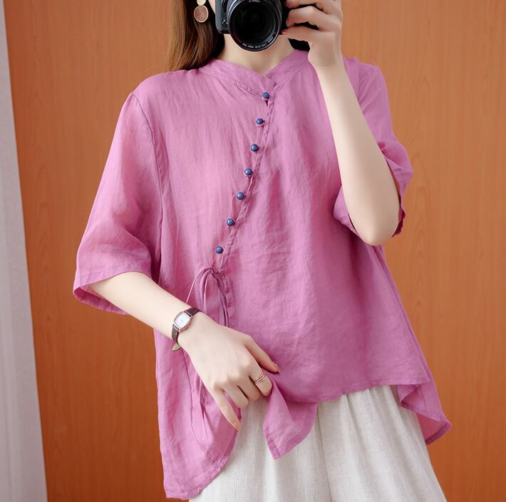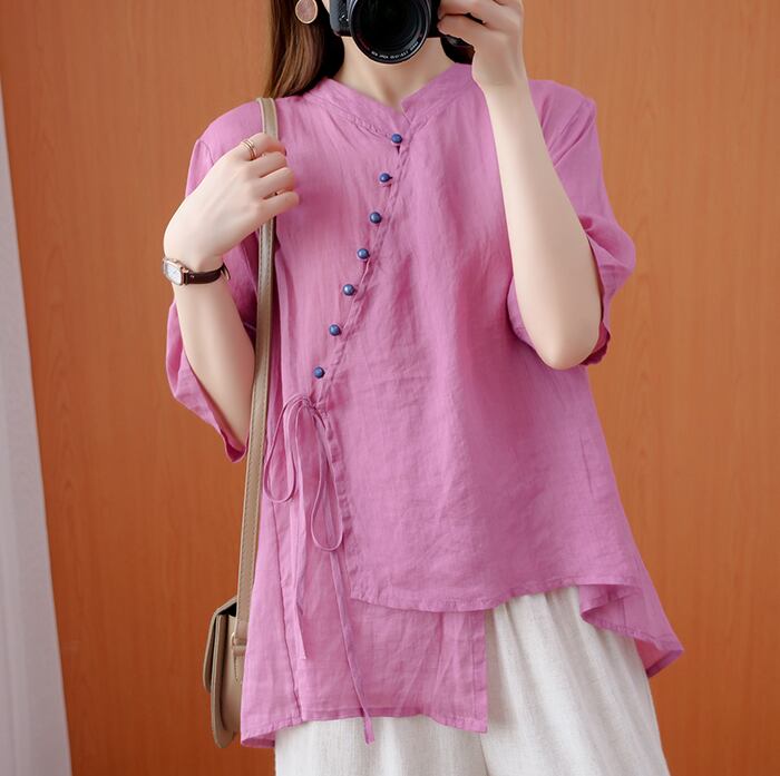 チャイナボタンブラウス トップス ブラウス 袖あり 半袖 5分袖 五分袖 ハイネック アシンメトリー かわいい 大人可愛い きれいめ シンプル カジュアル 大人 上品 おしゃれ お洒落 レトロ 大人可愛い 大人女子 こなれ感 ラフ ラブリー キュート ガーリー 個性的 主役級 存在感 無地 春 夏 10代 20代 30代 レディース 学生 通学 デート お出かけ 公園デビュー 女子会 休日 着回し 普段使い 重ね着 ゆったり ゆる 色展開 紫 パープル 黄色 イエロー