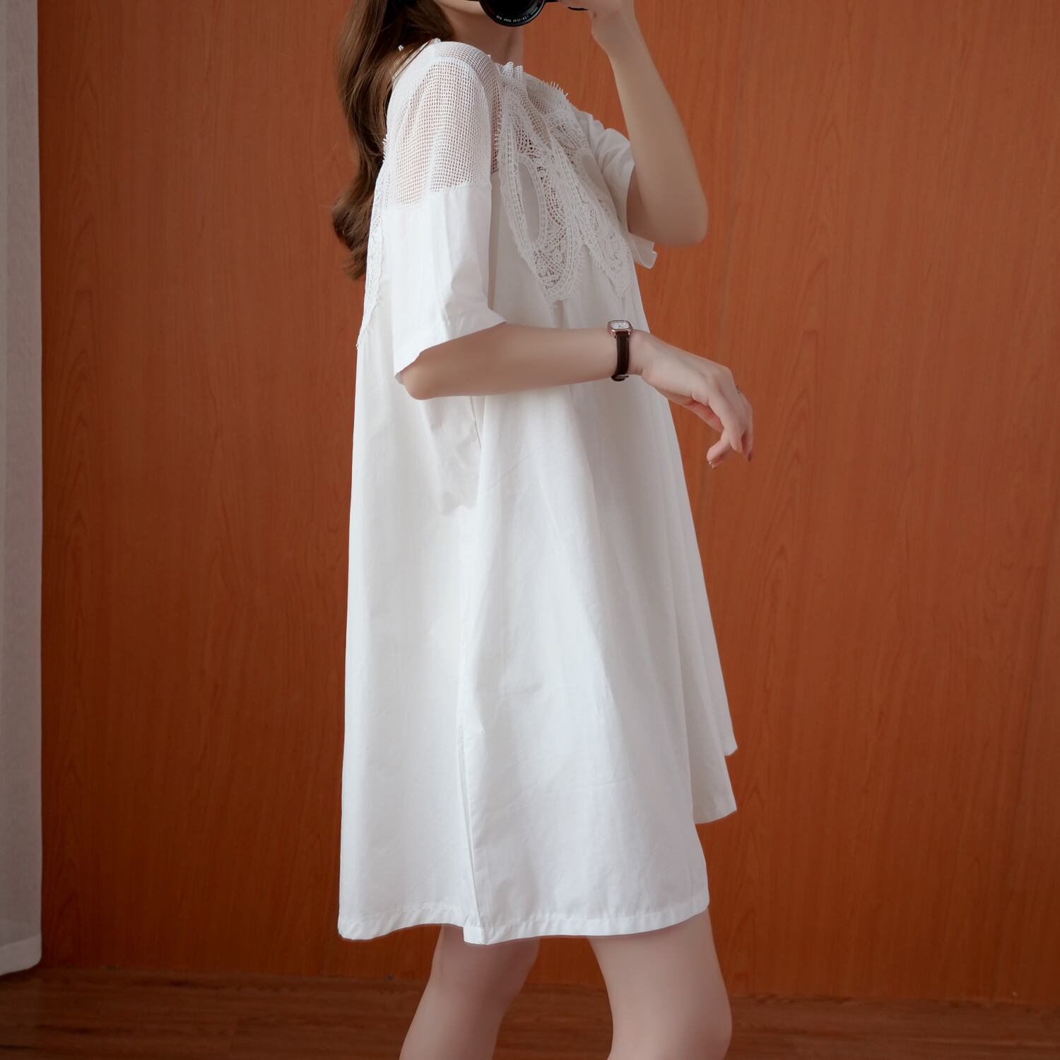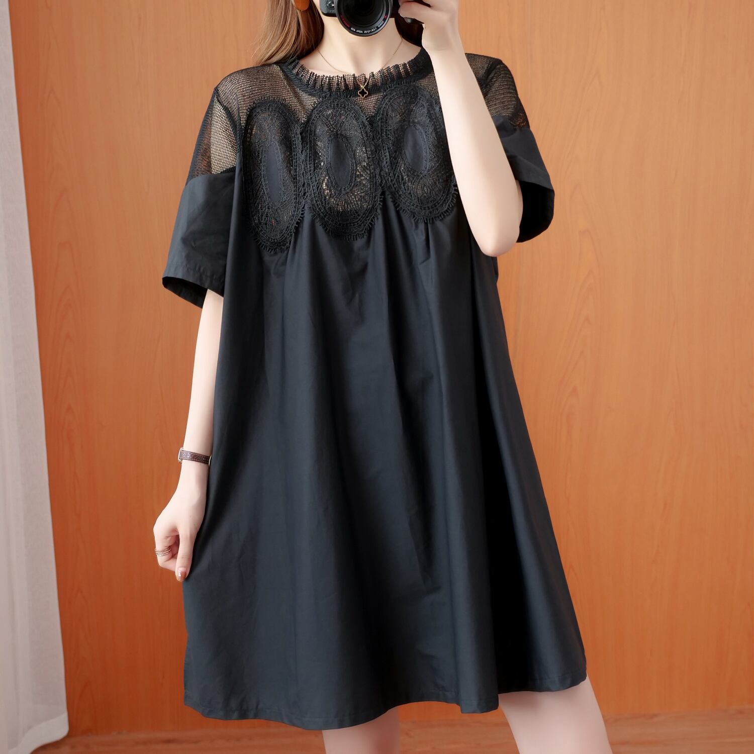 レースワンピースは、レトロでかわいらしいフレアデザインが特徴の、大人可愛いアイテムです。フェミニンで上品さもあわせもつので、デートや女子会などのおでかけにもぴったり!同じ季節でも、暑い日にはミニ丈で、肌を出してかわいらしさをアピールしたいですね。袖もあるので、通学や休日の公園デビューにも最適。レース素材と無地の生地の使い分けが、主役級の存在感を放ちます。バリエーションは、M、L、XL、2XL、3XLの5サイズ展開で、お好みに合わせてチョイスしてください。使いやすいホワイトとブラックの2色展開です。重ね着スタイルも叶うので、普段使いでも活躍できます。シンプルなラウンドネックで合わせるアイテムも選ばず、季節感や自分らしさを演出できます。ぜひ、このレースワンピースで、カジュアルにもきれいめにも自分を表現してみてください。