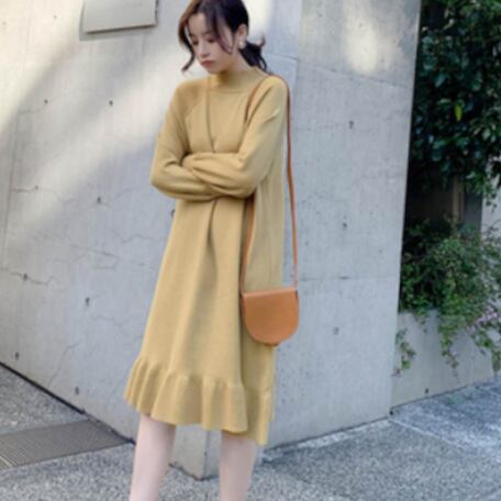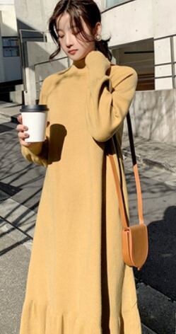ハイネックニットワンピース ワンピース ニット ミモレ丈 長袖 ハイネック フレア Aライン ニット かわいい 大人可愛い きれいめ シンプル 大人 上品 おしゃれ 大人可愛い 大人女子 ラブリー キュート 無地 秋 冬 ハロウィン クリスマス 10代 20代 30代 40代 50代 レディース ママ 女の子 オフィス OL 通勤 学生 通学 デート 公園デビュー 女子会 レストラン お散歩 着回し イエロー 黄色 黒 ブラック XL 2XL 3XL 4XL 大きいサイズ ゆったり 伸縮