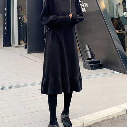 大人可愛い雰囲気漂う、ハイネックニットワンピースが新登場!コーディネイトしやすく、使い勝手のよいシンプルさが特徴です。徐々に寒くなる秋冬には、ミモレ丈が風を防いでくれ、長袖で体もカバーしてくれます。ハイネックは、細部にまでこだわり、華奢な首元をキレイに見せてくれます。