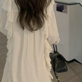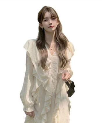 ロングワンピースで可愛らしい、スイートなガーリースタイルを楽しんでみませんか?綿100%の吸汗性の高い素材で製作したトップスに、ボトムスを合わせるだけで、一瞬にしてエレガントで女性らしいスタイルが完成します。Vネックとフリル、ロング袖のデザインが、中でも胸元と手首をキュートにアピールしてくれます。ミドル丈とロング丈からお選びいただけるので、どんなシーンにもマッチします。特にトレンドになっているレトロ風のファッションには、このワンピースがベストマッチ!学校や友人とのお出かけ、デート、女子会や食事会など、普段からおしゃれを楽しむ大人の女性にぴったりです。あなたも参考コーデルックとして、ぜひ一枚お迎えください。※サイズ選びには、実寸をご確認ください。