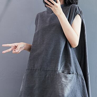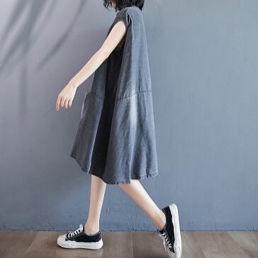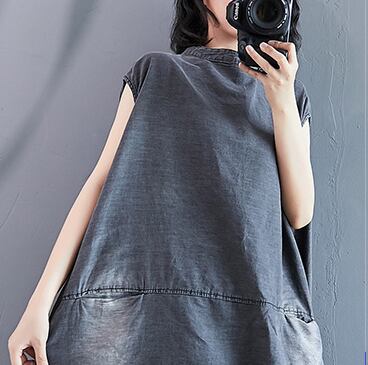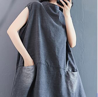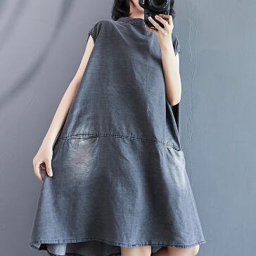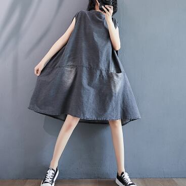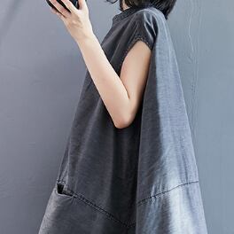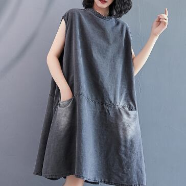 ゆったりとしシルエットが大人可愛いデニムノースリーブワンピース♪