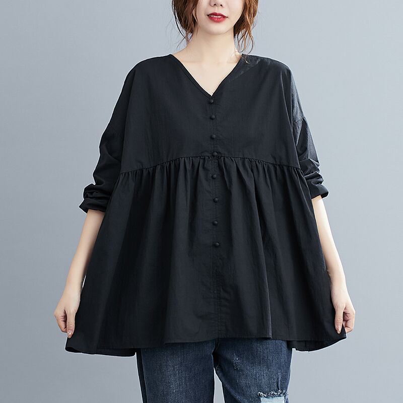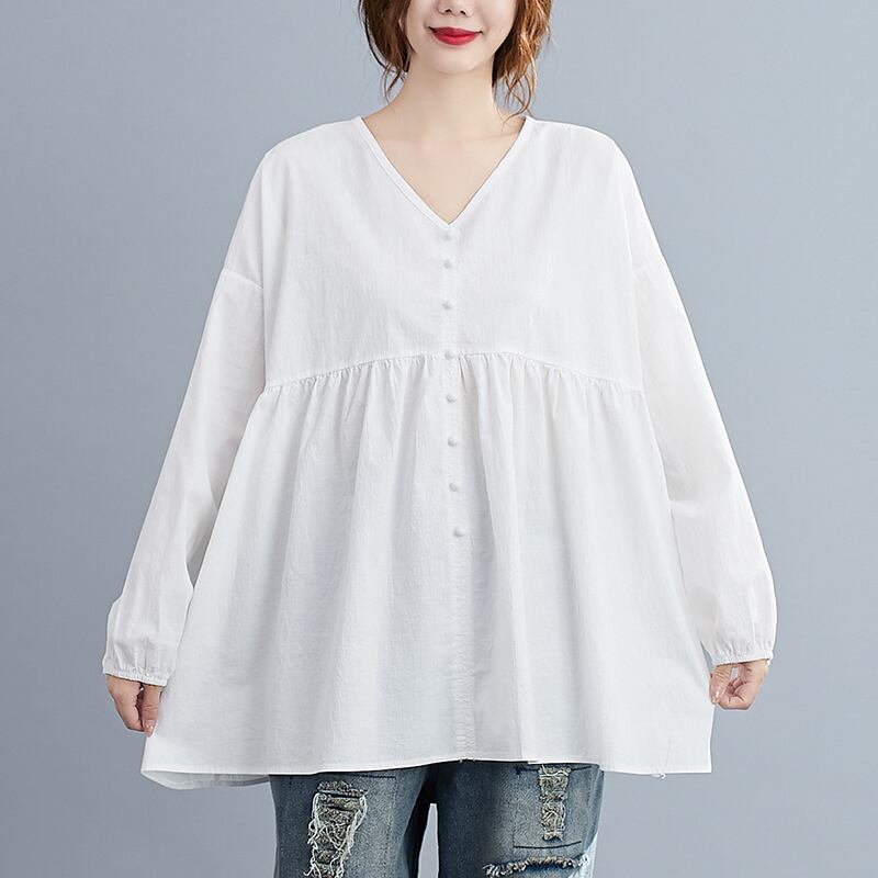 Ⅴネックブラウス トップス ブラウス 袖あり 長袖 Vネック フレア 綿 かわいい 大人可愛い きれいめ シンプル カジュアル 大人 上品 おしゃれ お洒落 レトロ 大人可愛い 大人女子 こなれ感 ラフ ラブリー キュート ガーリー 個性的 主役級 存在感 無地 春 秋 10代 20代 30代 レディース OL 通勤 学生 通学 デート お出かけ 公園デビュー 女子会 休日 着回し 普段使い 重ね着 サイズ L XL 色展開 白 ホワイト 黒 ブラック ピンク