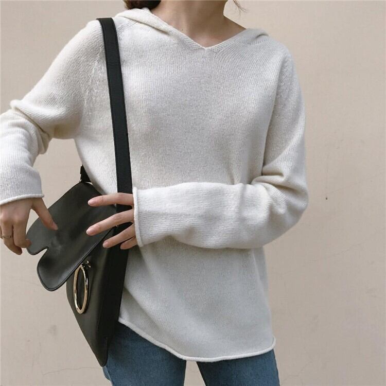 トップス ニットソー セーター 長袖 Vネック フード付き ニット かわいい 大人可愛い きれいめ シンプル カジュアル 大人 おしゃれ お洒落 大人可愛い 大人女子 こなれ感 ラフ キュート ガーリー エレガント 主役級 存在感 無地 秋 冬 10代 20代 30代 40代 レディース 女性用 ママ 女の子 オフィス 学生 デート お出かけ 公園デビュー 女子会 お泊まり 休日 着回し 普段使い 韓国 韓国系 ファッション コーデ スタイル 楽ちん 暖かい モテ 新作 定番 送料無料 トレンド 海外