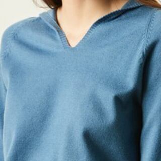目を引く大胆なVネックとフードがポイントのトップスニットソーです。カジュアルにもきれいめにも合わせられる万能アイテムで、大人可愛いスタイルに必須の一枚。長袖で温かく、秋冬の季節に活躍してくれます。