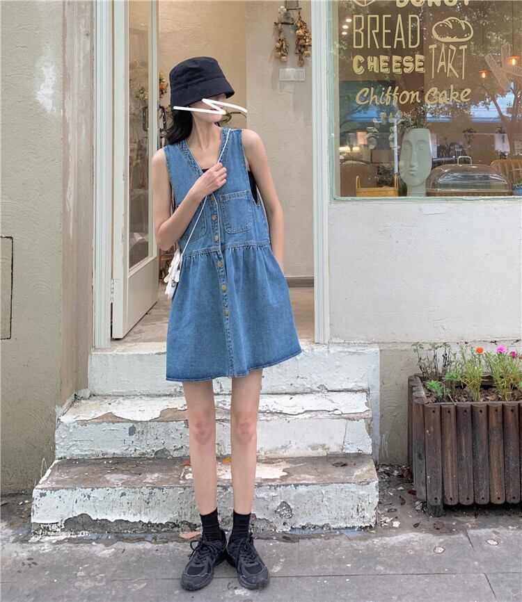 デニムワンピース サロペット ミニワンピース ワンピース ミニ ミニ丈 ショート ショート丈 袖なし Vネック かわいい 大人可愛い おしゃれ お洒落 レトロ 大人可愛い 大人女子 こなれ感 ラブリー キュート ガーリー セクシー 主役級 存在感 春 夏 10代 20代 30代 レディース 女性用 女の子 デート お出かけ 女子会 お泊まり 休日 着回し 普段使い 重ね着 韓国 韓国系 コーデ スタイル モテ 新作 定番 送料無料 トレンド 流行 インポート 海外 人気 女子力 大人カジュアル