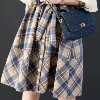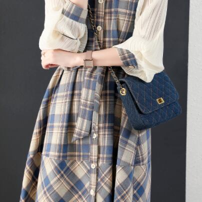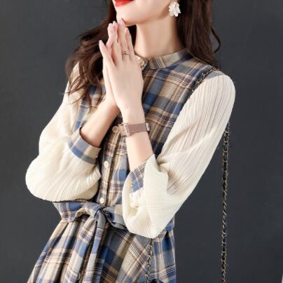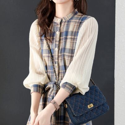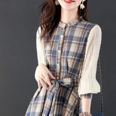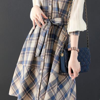 ドッキングチェックワンピース ワンピース ミディアム丈 袖あり 長袖 スタンドカラー Aライン ドッキング ウエストリボン 前開き ボタン 異素材MIX かわいい 大人可愛い きれいめ 大人 上品 おしゃれ レトロ 大人可愛い 大人女子 こなれ感 ラブリー キュート 個性的 クール モード系 エレガント モダン 主役級 存在感 抜け感 チェック柄 春 秋 誕生日 レディース 女性用 OL 通勤 学生 通学 デート お出かけ 女子会 休日 パーティー イベント 旅行 ホテル ガーデン レストラン 着回し