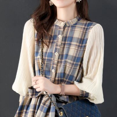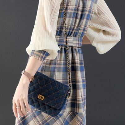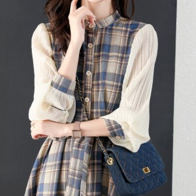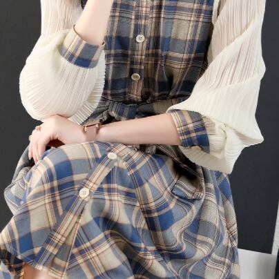 チェック柄のワンピースが登場しました!スタンドカラーに意思感あるチェック柄が、大人女子のきちんと感を演出します。MIX素材による異素材のドッキングが、レトロとモダンをミックスしたモード系エレガントなデザインです。