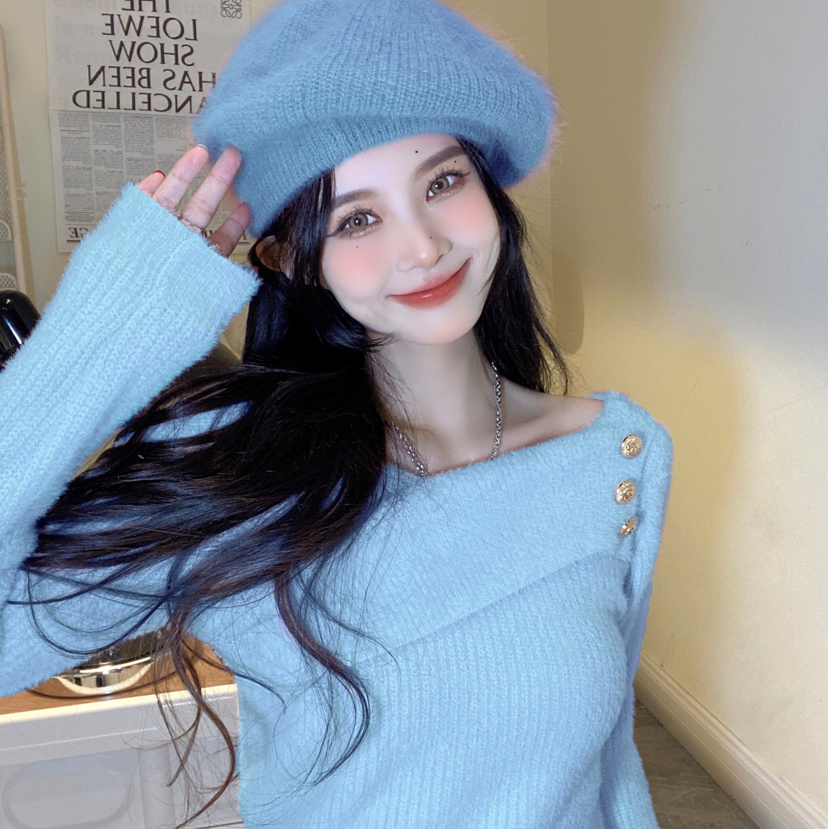 ご覧いただきありがとうございます!カラーセーターのご紹介です。ブラック、ホワイト、ピンク、ブルーの4色展開で、スリムなシルエットが美しい一枚。ストレートなデザインで上品かつこなれ感があり、大人可愛くおしゃれな着こなしが楽しめます。