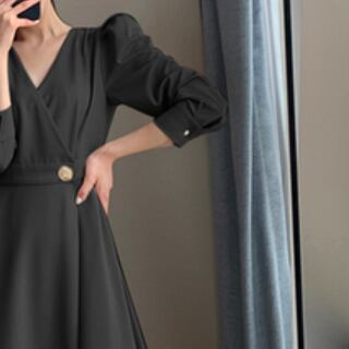 黒とアプリコットのツートーンが上品な、クラシックでシンプルな長袖ワンピースです。ボリューム感のある袖やVネック、タイトなシルエットが、大人の女性にぴったりのエレガントな印象を与えます。Aラインのミドル丈でスリムに見せる効果もあり、きれいめなコーディネートはもちろん、レトロ風や個性的なコーディネートにもマッチします。