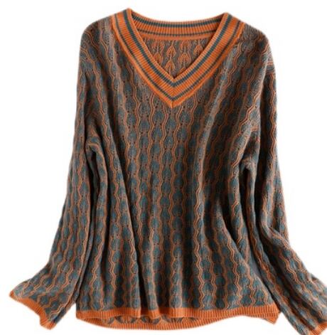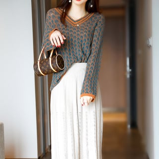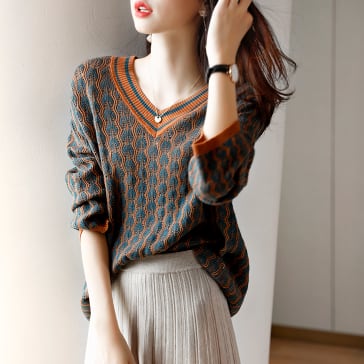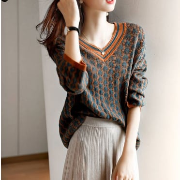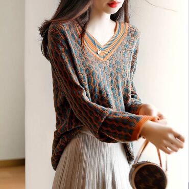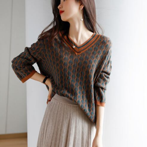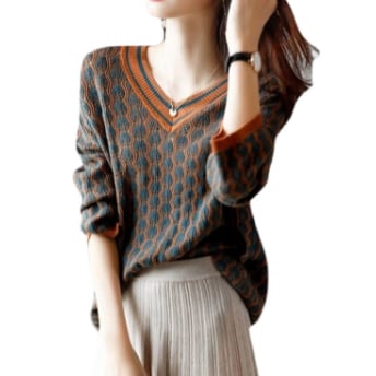 レトロ柄Vネックニット トップス ニット セーター ロング 長袖 Vネック ニット かわいい 大人可愛い きれいめ シンプル カジュアル 大人 上品 おしゃれ レトロ アジアン 大人可愛い 大人女子 こなれ感 柄 秋 冬 10代 20代 30代 40代 50代 レディース ママ 女の子 オフィス OL 通勤 学生 通学 デート お出かけ 公園デビュー 女子会 お泊まり 休日 着回し ファッション コーデ スタイル 楽ちん 暖かい モテ プレゼント S M L XL 大きめ ゆったり 茶色