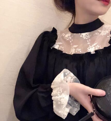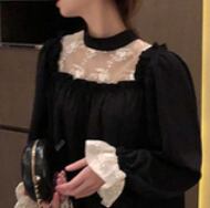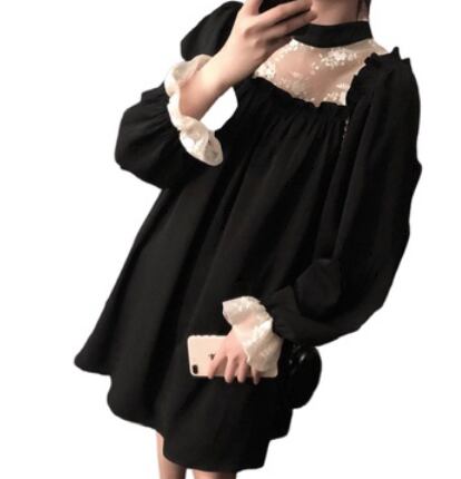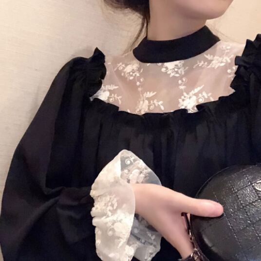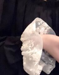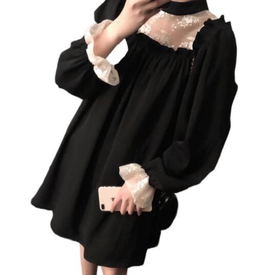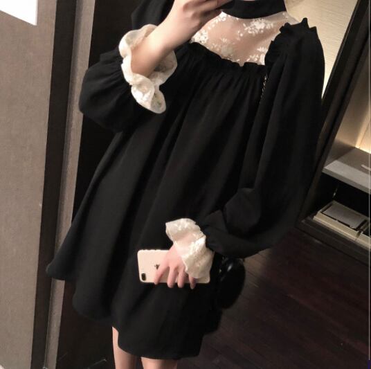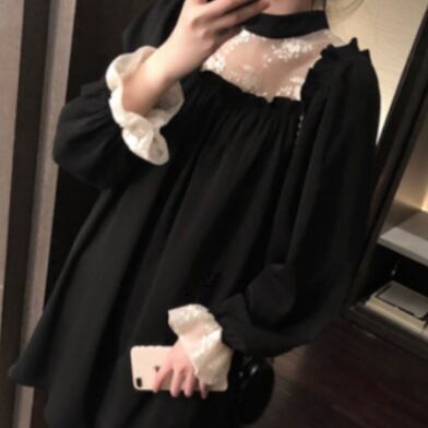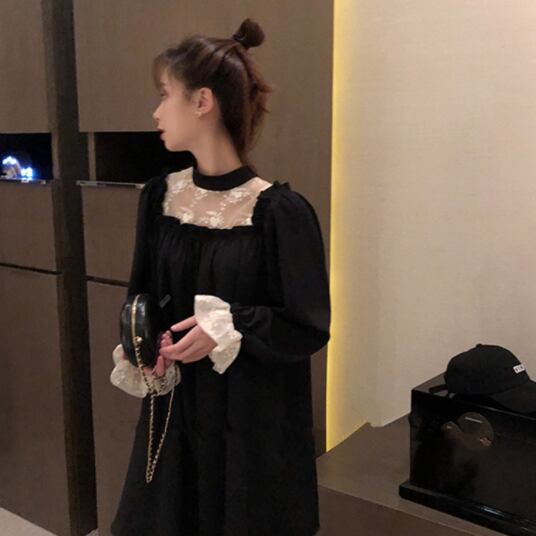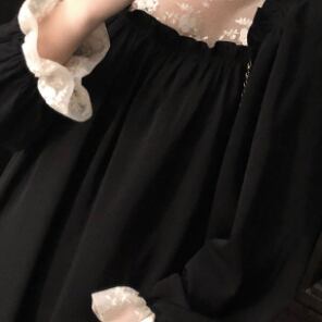 このレース&フリルブラックワンピースは、素敵な女性像を演出します。フリルレースのエレガントさと、黒いハイネックの上品さが調和したデザインは、キュートでありながら大人っぽい印象を与えます。