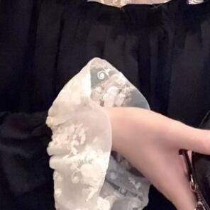 レース&フリルブラック膝丈ワンピースです。
