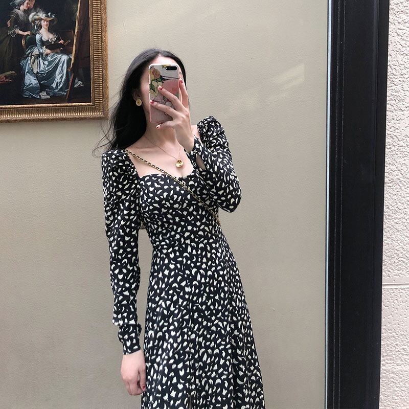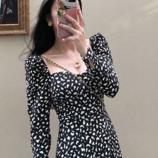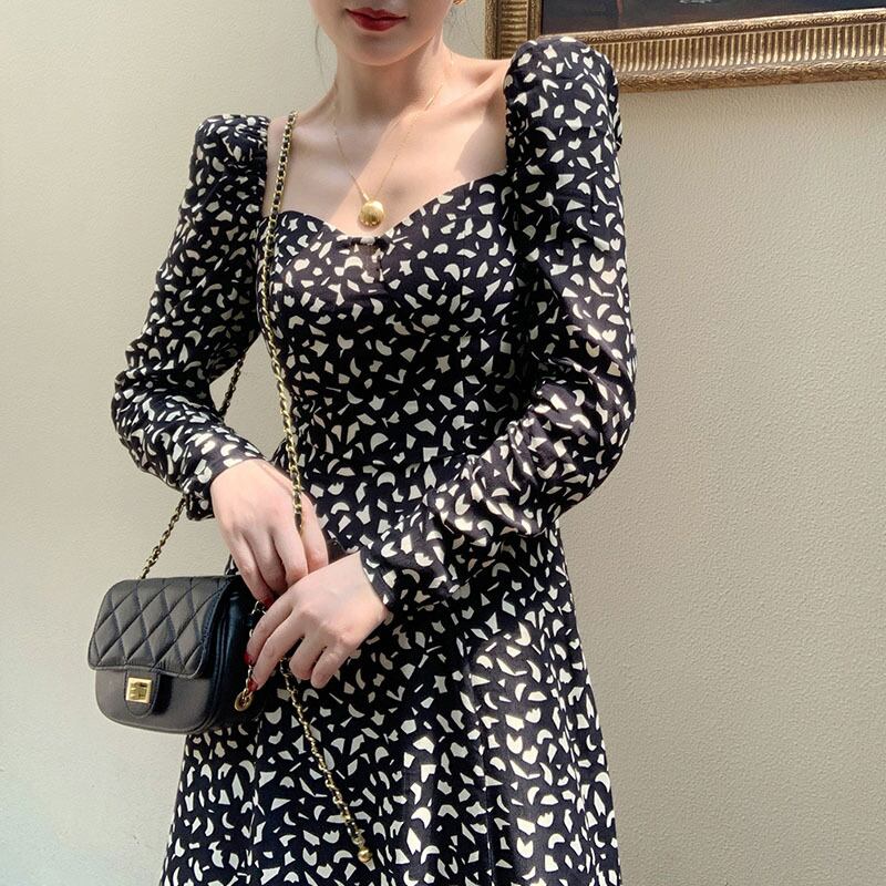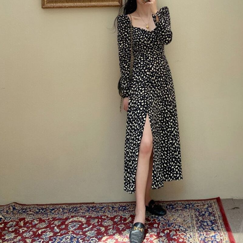 長袖ワンピース クラシック ミドル丈 袖あり 長袖 スクエアネック Aライン スリム 細身 タイト スリット ポリエステル 大人女子 大人 上品 おしゃれ きれいめ シンプル デイリーウェア レトロ レトロ風 こなれ感 個性的 デザイン 主役級 存在感 柄 秋 オータム 冬 ウインター 20代 30代 40代 レディース 女性用 デート お出かけ 女子会 食事会 着回し 普段使い ファッション コーデ 美脚 足長 M L XL 2XL 3XL 4XL 大きいサイズ
