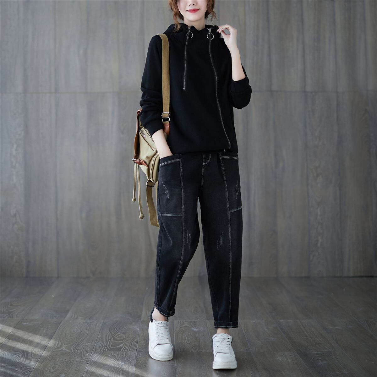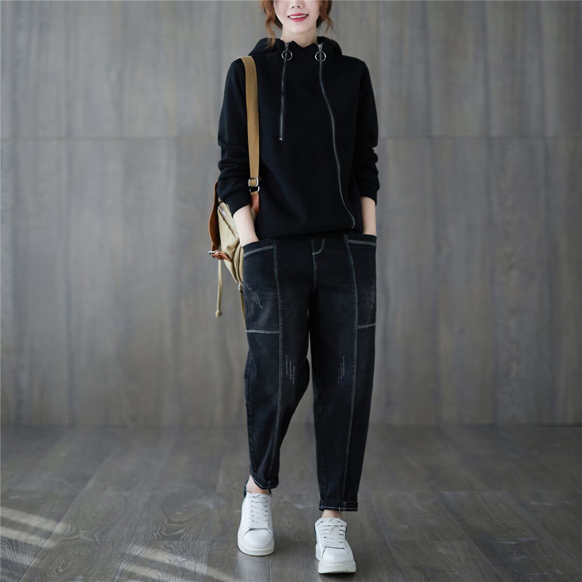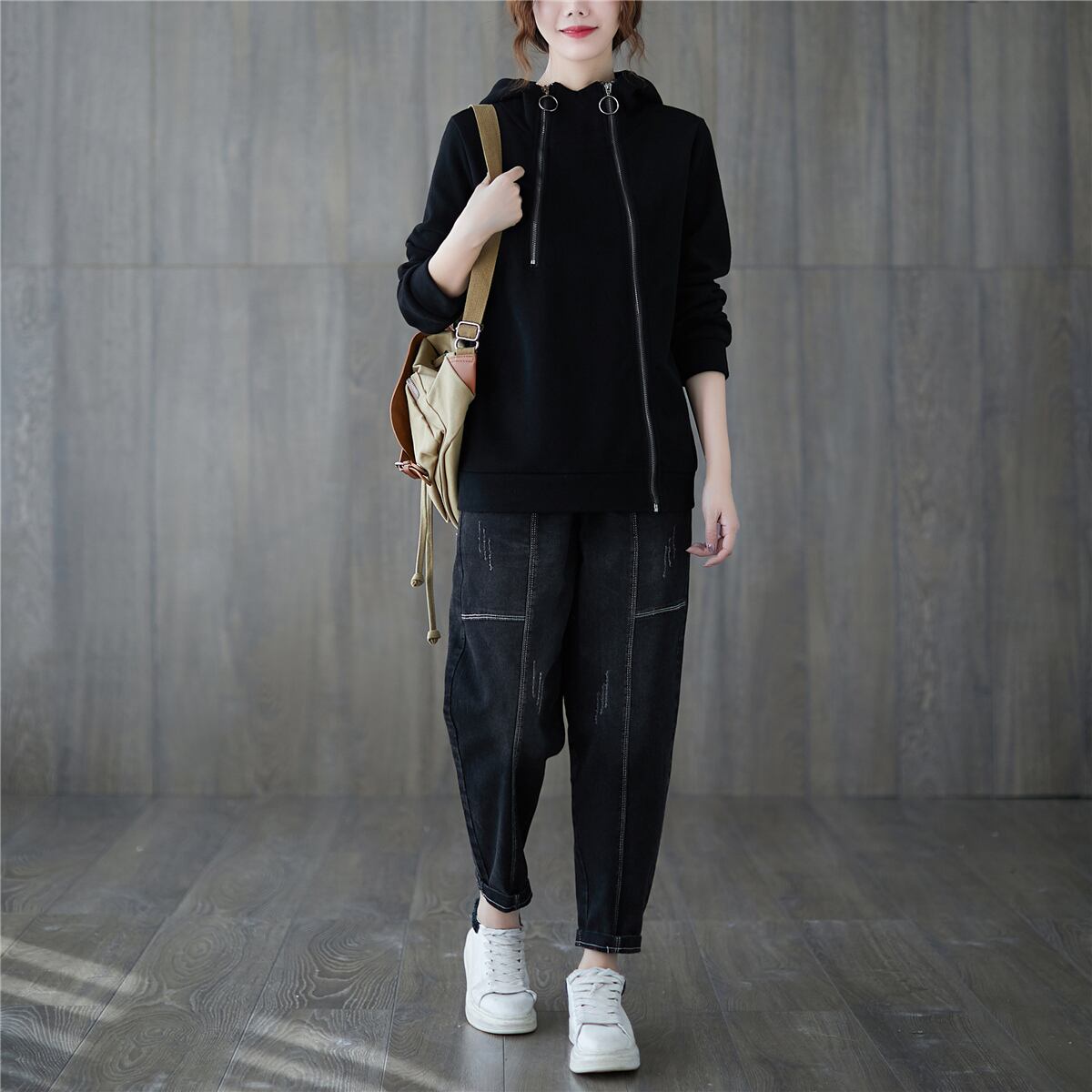 この長袖パーカーは、1枚でも、重ね着でも使える、万能トップス!シンプルなデザインが、どんなファッションにも合わせやすく、大人可愛いスタイルを叶えてくれます。フード付きで、寒い日も安心ですし、ジッパー付きなので調節も簡単♪