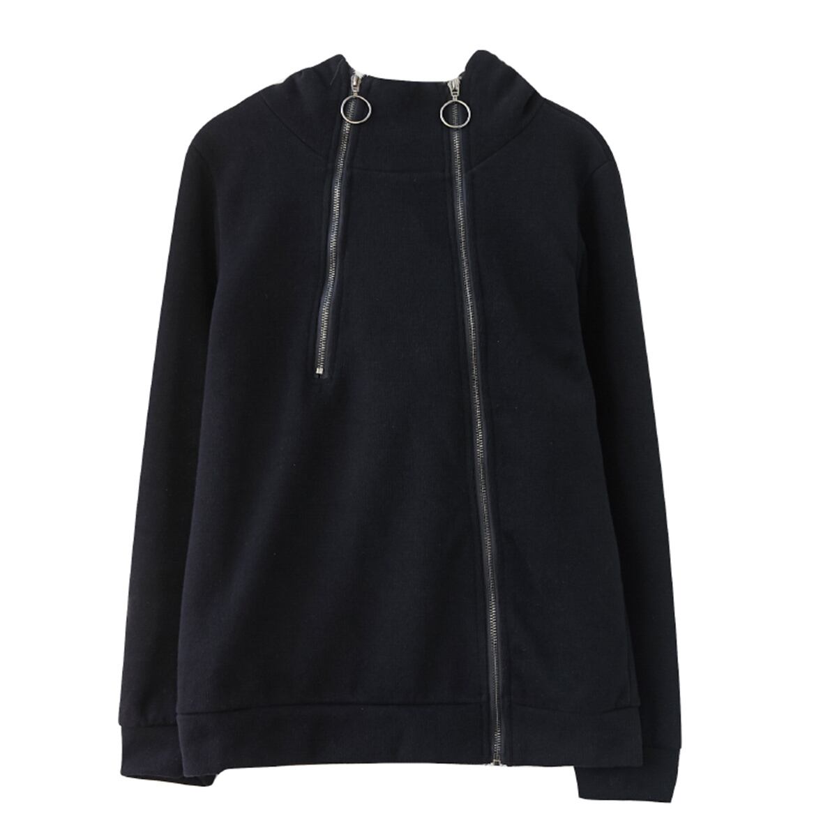 ジップデザインが個性的な長袖パーカーです。