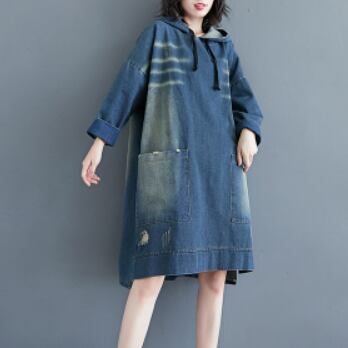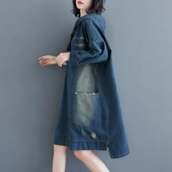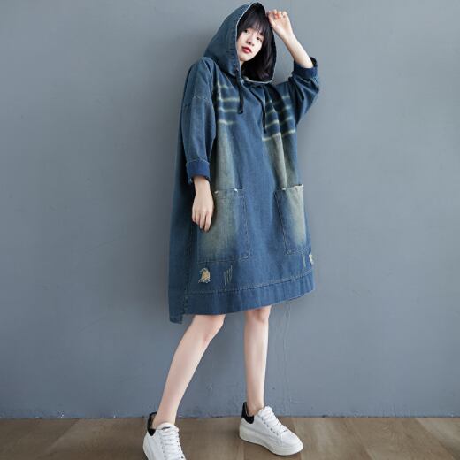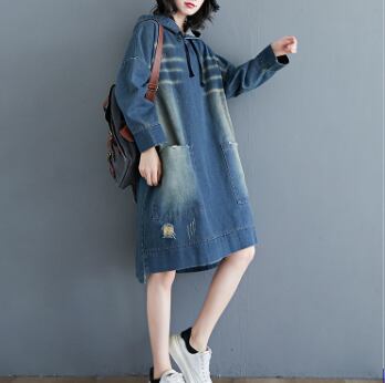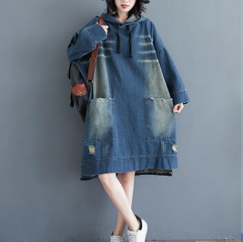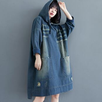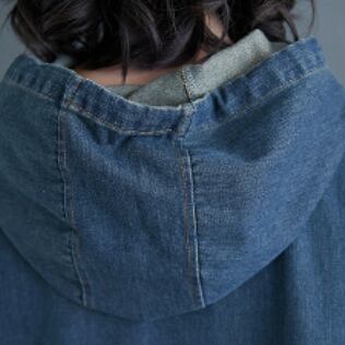 大きめサイズのブルーデニムパーカーワンピースです。