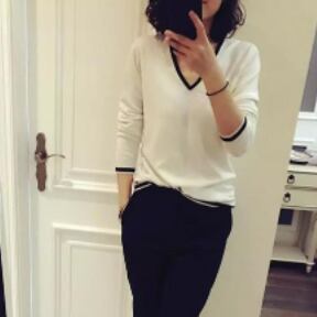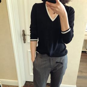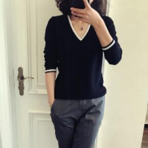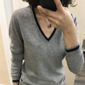 シンプルで着回ししやすいVネックセーターです。