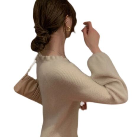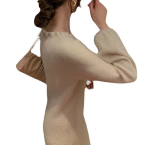 品の特徴としては、ロングニットワンピースとして着用できること。ニット素材で体型にフィットし、ボリューム袖がかわいらしい印象を与えます。また、セミフレア型のシルエットになっており、足元をスッキリ見せてくれ、上品な雰囲気に仕上げます。このニットワンピースは、大人かわいいや、お洒落な着こなしに最適で、10代から50代まで幅広い年齢層の女性におすすめです。無地カラーのベージュは、オフィススタイルからカジュアルスタイルまで様々な場面で着回しできます。冬の防寒対策にも最適です。さらに、プレゼントにも最適です。このワンピース一着で、あなたのおしゃれ度も暖かさもアップします!