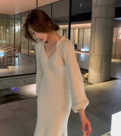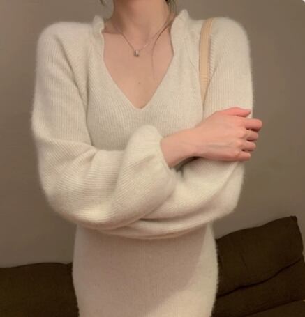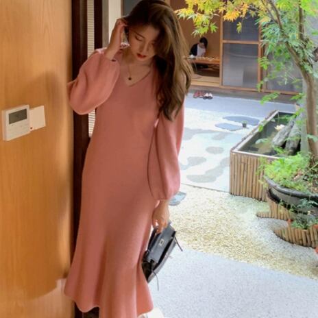 ロングニットワンピース ワンピース ニット ミモレ丈 長袖 ボリューム袖 Vネック セミフレア マーメイド ニット かわいい 大人可愛い きれいめ シンプル 大人 上品 おしゃれ お洒落 大人可愛い 大人女子 ラブリー キュート ガーリー 無地 秋 冬 誕生日 クリスマス バレンタイン 10代 20代 30代 40代 50代 レディース ママ 女の子 OL 通勤 学生 通学 デート お出かけ 女子会 休日 着回し ファッション コーデ 楽ちん 暖かい モテ プレゼント S M L XL 2XL ベージュ