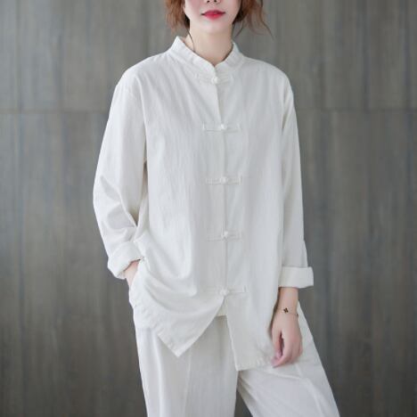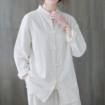 チャイナ服風ブラウス トップス シャツ ブラウス ロング丈 長袖 ハイネック ストレート 綿 お得 かわいい 大人可愛い きれいめ シンプル カジュアル 大人 おしゃれ レトロ アジアン エスニック 大人可愛い 大人女子 こなれ感 ラフ 爽やか ナチュラル 無地 春 秋 10代 20代 30代 40代 50代 60代 レディース ママ 女の子 学生 通学 デート お出かけ 休日 リゾート 旅行 着回し 普段使い ファッション コーデ スタイル 楽ちん M L XL 2XL 白 ホワイト 青