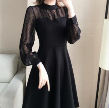 シフォンブラックワンピース シンプル フォーマル ブラック 黒 ひざ丈 袖あり 長袖 ラウンドネック Aライン スリム 細身 タイト 透け感 シアー 綿 コットン 大人女子 大人 上品 おしゃれ きれいめ シンプル レトロ レトロ風 こなれ感 キュート かわいい 女子 個性的 デザイン 主役級 存在感 無地 春 スプリング 秋 オータム 20代 10代 レディース 女性用 デート お出かけ 女子会 食事会 パーティ S M L XL 2XL 3XL 大きいサイズ