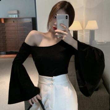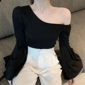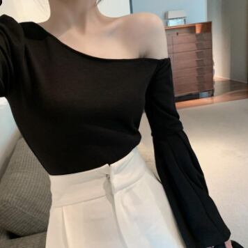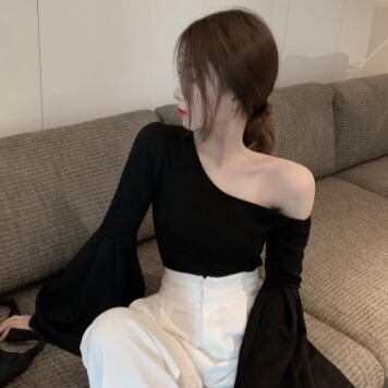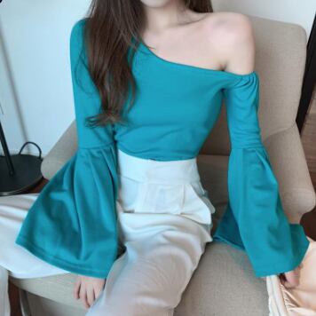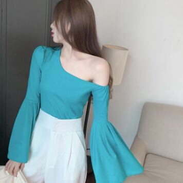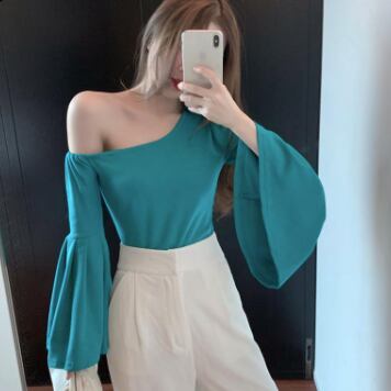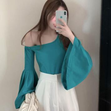 ワンショルフレアスリーブブラウス トップス ブラウス 袖あり 長袖 フレアスリーブ ワンショルダー ワンショル 綿 かわいい 大人可愛い きれいめ シンプル カジュアル 大人 上品 おしゃれ お洒落 レトロ 大人可愛い 大人女子 こなれ感 ラフ マニッシュ ボーイッシュ スポーティー 個性的 主役級 存在感 無地 春 秋 10代 20代 30代 レディース OL 通勤 学生 通学 デート お出かけ 公園デビュー 女子会 休日 着回し 普段使い 重ね着 韓国系 オルチャン サイズ L XL 2XL 3XL
