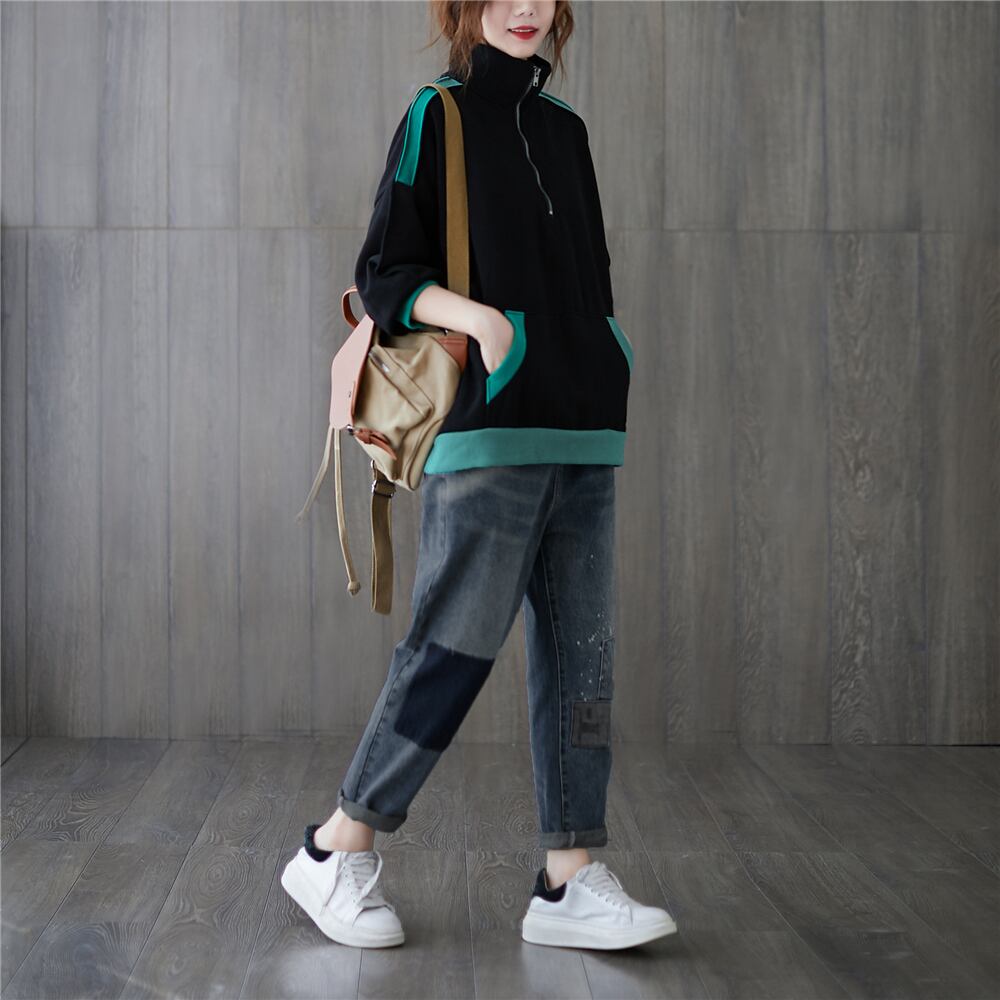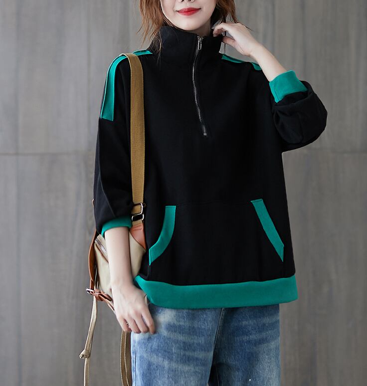 ハーフジッププルオーバー トップス プルオーバー 袖あり 長袖 ハイネック ファスナー 綿 かわいい 大人可愛い きれいめ シンプル カジュアル 大人 上品 おしゃれ お洒落 レトロ 大人可愛い 大人女子 こなれ感 ラフ マニッシュ ボーイッシュ スポーティー 個性的 主役級 存在感 無地 春 秋 10代 20代 30代 レディース 学生 通学 デート お出かけ 公園デビュー 女子会 休日 着回し 普段使い 重ね着 ゆったり ゆる 色展開 黒 ブラック