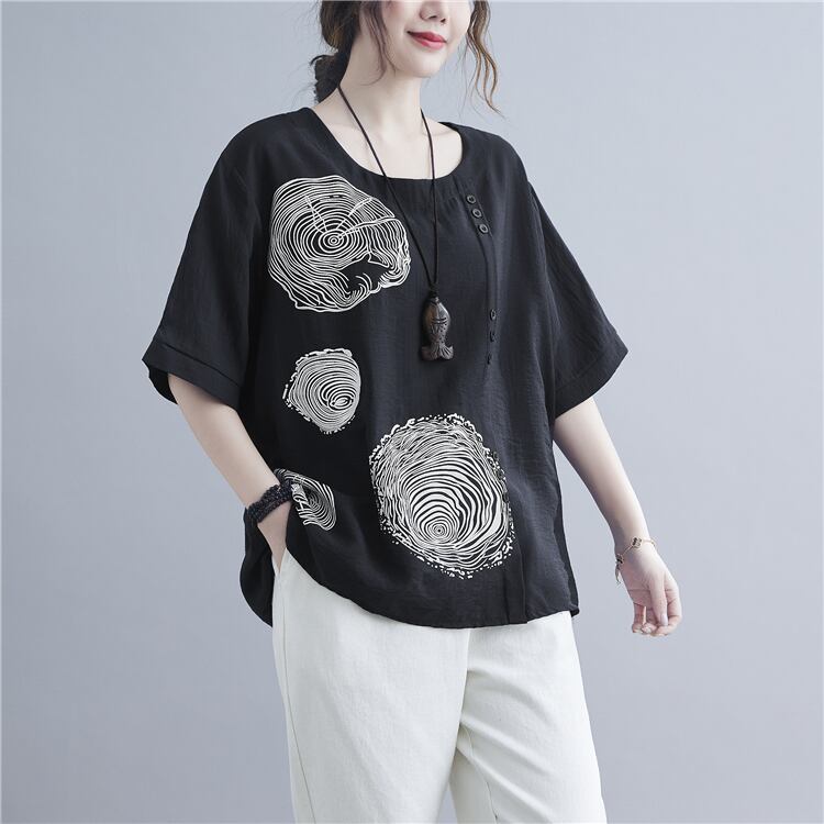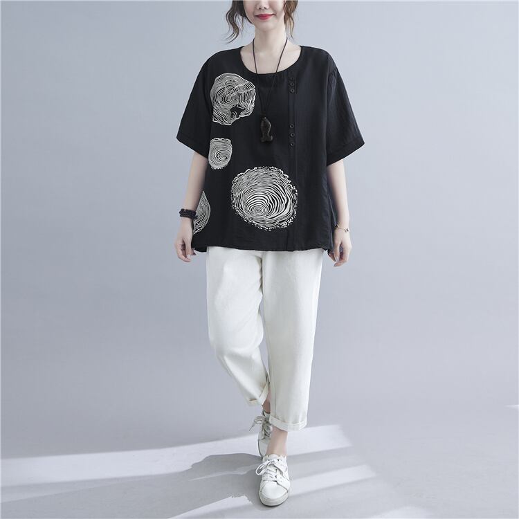 シンプルでありながら、個性的で存在感のある一枚、それが半袖ブラウスです。ラウンドネックで優しい印象の中にも、前開きがアクセントになっています。大人可愛い、レトロ、こなれ感など、様々なスタイルにも合わせやすいのが魅力の一つ。無地と柄があるので、お気に入りのカラーを見つけてくださいね。また、10代から30代の幅広い年齢層にもおすすめで、学校やオフィス、デートなど、様々なシーンで活躍します。着回し力も抜群!大人の女性にとって必須の一着となること、間違いありません。是非、公園デビューや女子会、休日のお出かけにも着ていっていただきたいです。ただし、洗濯の際には、手洗いをお勧めいたします。