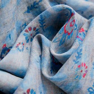 爽やかブルーのプリント総柄シャツ♪
