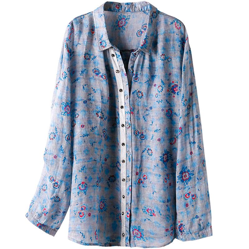 シャツ トップス ブラウス ミディアム丈 長袖 青 ブルー ポロカラー ストレート 透け感 シースルー 綿 薄手 かわいい カジュアル 大人 おしゃれ お洒落 かっこいい 大人可愛い 大人女子 こなれ感 ラフ 個性的 モダン 主役級 存在感 とろみ感 抜け感 ヨーロピアンスタイル 柄 春 夏 秋 20代 30代 通勤 通学 デート お出かけ 女子会 休日 リゾート 旅行 着回し 普段使い コーデ スタイル トレンド 流行 インスタ映え サイズ M L XL 2XL 3XL 4XL