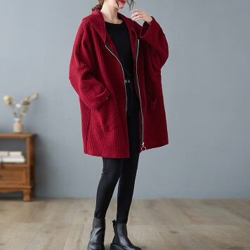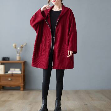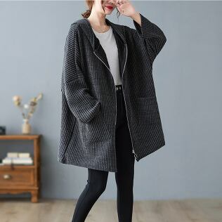 大きめのサイズのビッグアウターが登場!フード付きで、もこもこしたコーデュロイ素材が特徴的です。ワイドなシルエットが旬の着こなしにぴったり。ロング丈なので、レギンスやスキニーパンツとの相性も抜群です。秋冬はもちろん、寒い春先もしっかりと防寒できます。