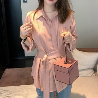 アシンメトリーシャツ トップス シャツ ブラウス 袖あり 長袖 襟付き ウエストマーク ウエストリボン 前開き かわいい 大人可愛い きれいめ シンプル カジュアル 大人 上品 おしゃれ お洒落 レトロ 大人可愛い 大人女子 こなれ感 ラブリー キュート ガーリー 個性的 主役級 存在感 無地 春 秋 10代 20代 30代 レディース OL 通勤 学生 通学 デート お出かけ 公園デビュー 女子会 休日 着回し 普段使い 重ね着 サイズ S M L 色展開 ピンク