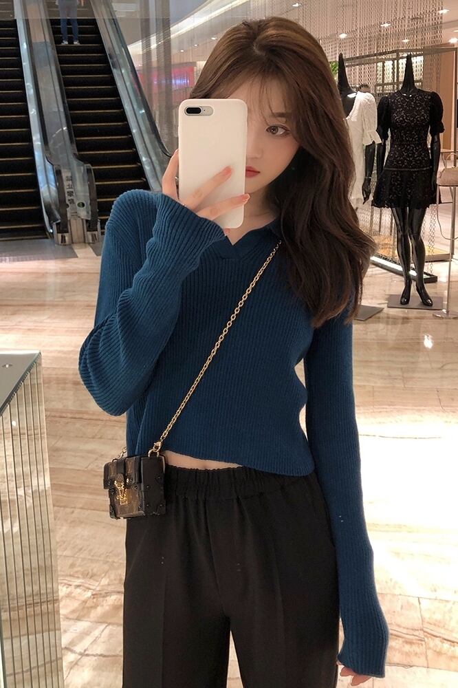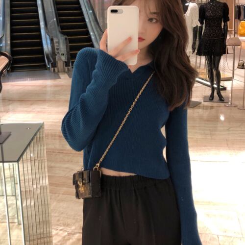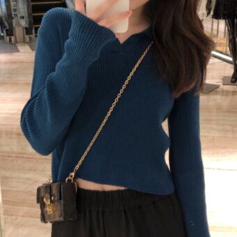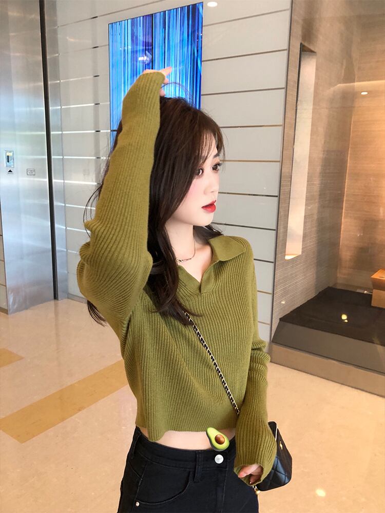 襟付きショート丈ニット トップス セーター ショート ショート丈 袖あり 長袖 Vネック 襟付き 綿 かわいい 大人可愛い きれいめ シンプル カジュアル 大人 上品 おしゃれ お洒落 レトロ 大人可愛い 大人女子 こなれ感 ラブリー キュート ガーリー 個性的 主役級 存在感 無地 秋 冬 10代 20代 30代 レディース 学生 通学 デート お出かけ 公園デビュー 女子会 休日 着回し 普段使い 重ね着 サイズ S M L 色展開 黒 ブラック 青 ブルー 緑 グリーン ピンク