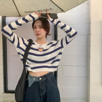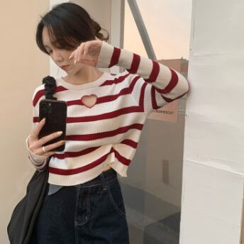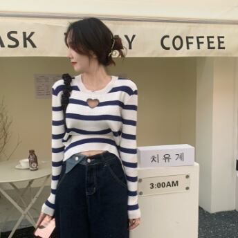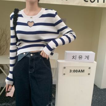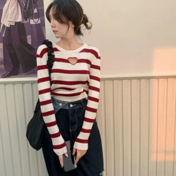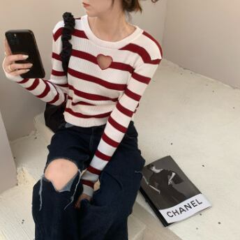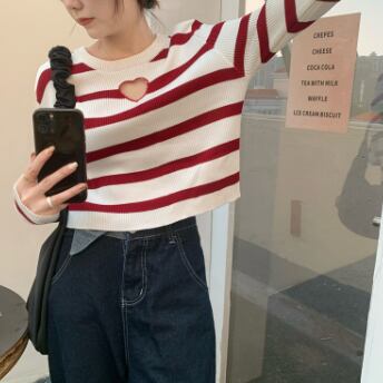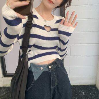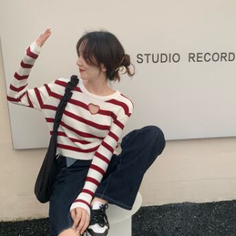 胸元ハートデザインショート丈カットソー トップス カットソー ショート丈 長袖 ラウンドネック スリム タイト 細身 ストレート リブ 伸縮性 かわいい シンプル カジュアル おしゃれ かっこいい ラブリー キュート セクシー 主役級 存在感 柄 ボーダー 春 秋 誕生日 10代 20代 30代 レディース ママ 女の子 デート お出かけ 女子会 休日 イベント 着回し お揃い 双子 韓国 ファッション コーデ スタイル デート モテ インスタ映え フリーサイズ 黒 ブラック 赤 レッド 青 ブルー