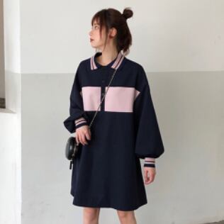個性的なバイカラーデザインが可愛いポロシャツワンピース♪
