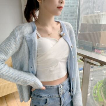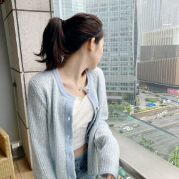 春の爽やかなイメージにピッタリのニットカーディガンです。
