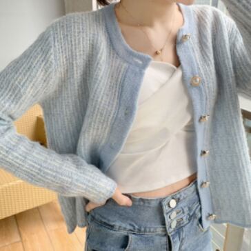 今季大注目のニットカーディガンが新登場!ミディアム丈でストレートなシルエットが美しく、女性らしいラウンドネックと襟なしのデザインが、大人っぽい上品さを演出してくれます。軽い着心地の薄手のニット素材で、春から秋まで長く活用できるアイテムです。また、前開きにボタンがついているので、着脱が簡単で便利です。
