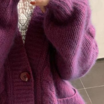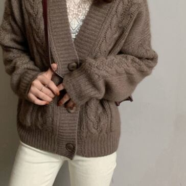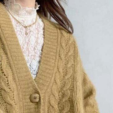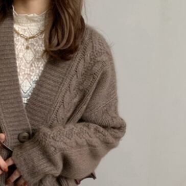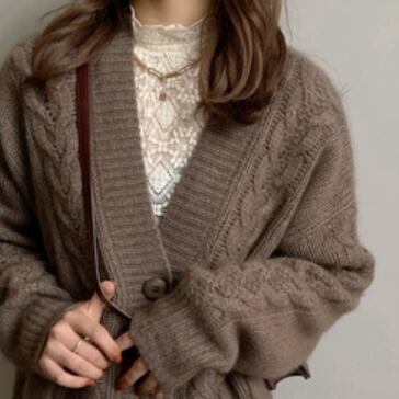 ルーズレトロなケーブルニットカーディガンです。