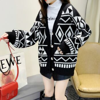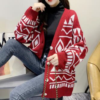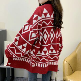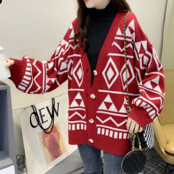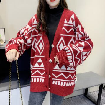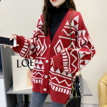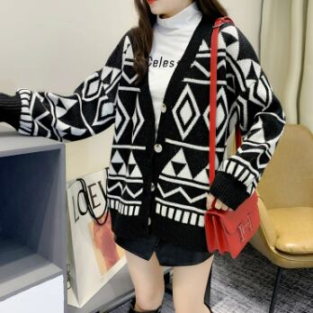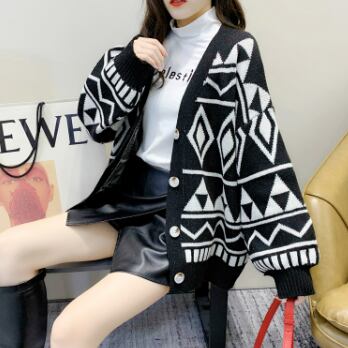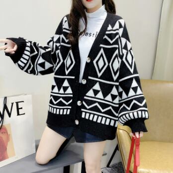 幾何学模様ニットカーディガン トップス アウター カーディガン ミディアム丈 袖あり Vネック 襟なし ワイド 前開き ボタン ニット 厚手 かわいい 大人可愛い カジュアル 大人 おしゃれ かっこいい レトロ 大人可愛い 大人女子 こなれ感 ラフ ラブリー キュート 個性的 クール モード系 モダン 主役級 存在感 抜け感 幾何学模様 春 秋 レディース 女性用 OL 通勤 学生 通学 デート お出かけ 女子会 休日 旅行 着回し 普段使い ファッション コーデ スタイル 暖かい 防寒 モテ 新作