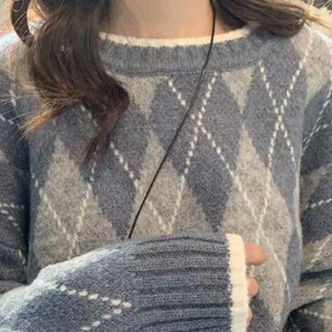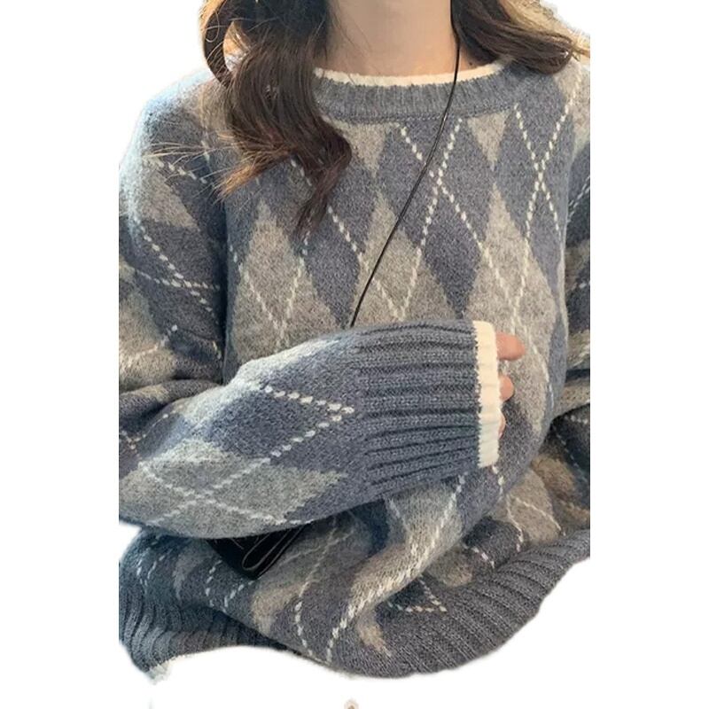 ダイヤ柄ニットセーター トップス セーター ミディアム丈 袖あり 長袖 ラウンドネック 襟なし ワイド ニット 厚手 かわいい 大人可愛い カジュアル 大人 おしゃれ かっこいい レトロ 大人可愛い 大人女子 こなれ感 ラフ ラブリー キュート ルーズ モダン 抜け感 ダイヤ柄 秋 冬 レディース 女性用 OL 通勤 学生 通学 デート お出かけ 休日 アウトドア 旅行 着回し 普段使い ファッション コーデ スタイル 暖かい 新作 定番 トレンド 流行 インスタ映え 好感度 イメージアップ 注目 話題