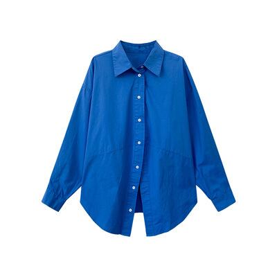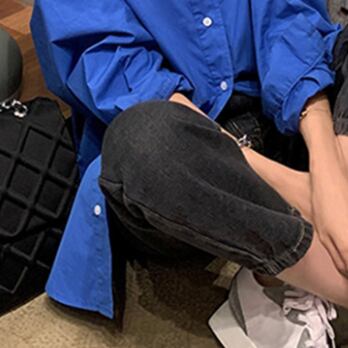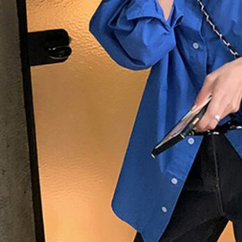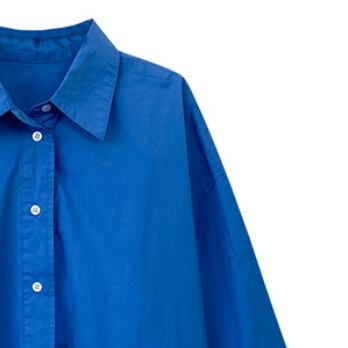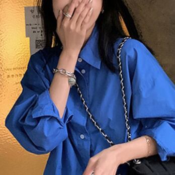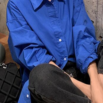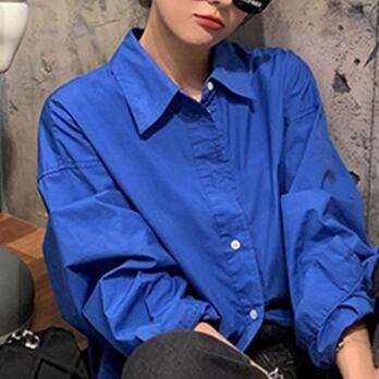 ブルー長袖シャツ トップス シャツ ブラウス ミディアム丈 袖あり 長袖 パフスリーブ 襟付き ポロカラー ストレート 前開き ボタン 薄手 大人可愛い きれいめ シンプル カジュアル 大人 上品 おしゃれ かっこいい 大人可愛い 大人女子 こなれ感 ラフ メンズライク ラブリー キュート ルーズ クール モダン 抜け感 無地 レディース 女性用 OL 通勤 学生 通学 デート お出かけ 女子会 休日 パーティー イベント 旅行 着回し 普段使い ファッション コーデ スタイル 暖かい モテ 新作