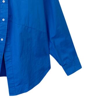 サファイアブルーの発色がとてもきれいな長袖シャツです。