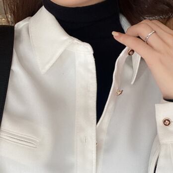 大人可愛いブラッシュドシャツが登場しました!ミディアム丈で袖ありの、オフィスシーンにもおすすめのトップスです。ふんわりとしたパフスリーブに、ポロカラーの衿付きがアクセント。ストレートなシルエットで、レトロな雰囲気も漂います。